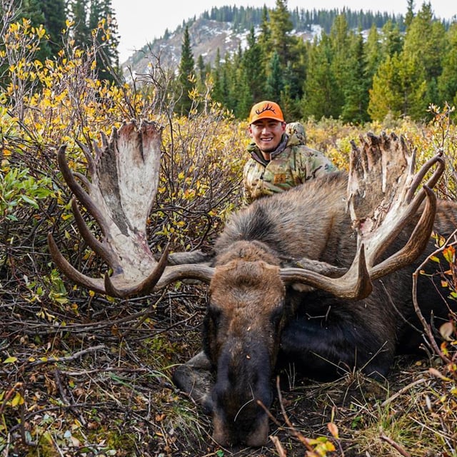 I approached the bull and sat there in disbelief. I thought to myself, “How did this happen?” Tears of joy began to flow as I admired his beauty. I had accomplished my dream. Everything felt surreal. The hunt went picture perfect, and I cherished that because oftentimes our efforts go unrewarded. I reached out for help as I began to cut up the moose. Thankfully, my mom and my friends from AEI Outfitters came to help pack him out. The hunt was everything I could have ever asked for. I left the mountain with a full heart and a freezer full of meat.