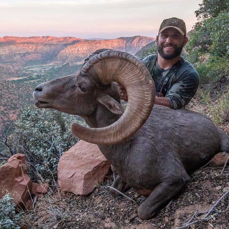 For seven years, I’d put in for draw tags at the show, and for seven years, it was unsuccessful. Not feeling very confident, I entered again and hoped for the best. The show came and went, and we returned home after a long week in the Finz and Featherz booth. With our first baby on the way, my wife and I were out front trying to figure out how to install a carseat in her car. As I sat there frustrated, trying to make sense of all the buckles, my phone started ringing nonstop. I needed to focus and couldn’t take any calls at that moment. After about five missed calls, I finally looked at my phone. It was my buddy, Nate. As I answered the phone, I could hear in his voice something was going on. “Dude!” he yelled, “You need to check the show results now!” I hung up and instantly pulled up the website. I yelled at the top of my lungs as I read my results. I had just won one of the best Desert sheep tags in the state of Utah. I immediately got on a group call to my closest friends and started yelling like I had just won the lottery, and in the hunting world, I had!