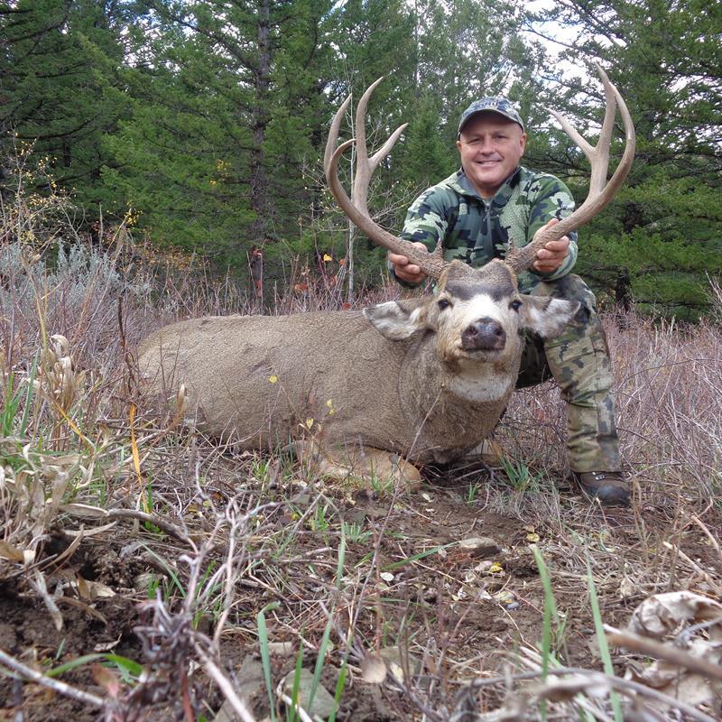 At 1 p.m., I was glassing down into a nasty canyon that was thick with timber. At 780 yards, I glassed what looked like an older white-faced buck looking at me. This was in a small opening in the middle of the timber. I grabbed my spotter and zoomed in to 55 power. It looked like an older buck with decent horns. He was looking right at me with his body broadside. At any moment, he could walk off and disappear into the timber. I had to make a quick decision. He appeared to be at least 4 years old. His rack looked to be 24-25" wide, and he had decent mass and was fairly tall. Since he was looking straight at me, I couldn’t make out all his points.