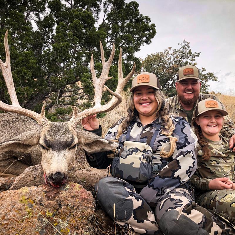 New Mexico, I apply most of our hunters. Before deadline time approached, I asked my wife, Antoinette Rosales, if she wanted to apply for anything. We talked about it for about five minutes, and to her knowledge, she wasn’t applying for anything. I talked to our little girl, Reighlyn Rosales (aka Rynni), and she said, “Dad, let’s just go deer hunting,” so that’s what we did. Putting Antoinette in for all tough draws, I put her third choice in a unit that I’d grown up in all my life and had killed some amazing deer in. When draw results came out in mid-April, overwhelmed with hunters calling and scheduling, I overlooked our personal draw results. About a week after results posted, I broke the news to Reighlyn and Antoinette. They were both filled with excitement being that we could all hunt together and that she drew her third choice first season rifle. This was a hunt we could do right from our house and not have to go camping.We immediately started scouting in preparation for the hunt. We had a few target bucks that we had hunters pass on from the previous year. We were faced with a horrible early summer drought that really moved deer around. When our rainy season finally made an appearance in July, I had lost track of our #1 and #2 bucks. As hunting season began, our scouting trips were put on hold. About every two or three weeks, I would have my cousin check cameras and sign of bucks. With little to no luck, we were starting to get worried.About three weeks prior to the hunt, one of the elk guides spotted a mid to upper 180" buck. We were trying to target a buck that would be north of the 180" range, so we were being very selective. We donated a lot of our time trying to lay eyes on the buck that had been seen. We came up short after looking at about 8-10 bucks, none being the right deer. Our muzzleloader deer season was the week prior to Antoinette’s rifle hunt. I had to guide a hunter that week, and we started in the area where the big buck was last seen. We started glassing that morning and turned up a group of bucks. We made a move down and found ourselves 300 yards away. We made quick work of the shot and had ourselves a 170" buck. When we showed up at the lodge, Antoinette and Reighlyn were there to greet us and look at the buck. They were convinced that was the big buck that had been seen. We then found out from the elk guide that the buck we had shot was not the deer that he had seen the week before. With four days before the hunt, we wasted no time trying to locate the buck. Every day after school and work, we would spend a lot of time on the glass trying to locate the big buck.With two days left before the hunt and a shooter buck not yet located, we were starting to second guess our decision on a deer bigger than 180". Reighlyn was very motivated and confident that we could turn up the biggest buck, so we stuck to our guns. We found ourselves the night before opening day without a buck located. Antoinette decided to spend opening day at the last location where we had seen the big 4, our #1 buck. July was the last time we had laid eyes on the deer.After the morning hunt, Reighlyn wanted to go eat at our favorite lunch restaurant. After our bellies were full, we returned in search of a shooter buck, but we later headed home with sore eyes from 9+ hours on glass.The next morning, we woke up one hour later than we had hoped due to daylight savings. We stopped by the gas station and everyone got something for a quick breakfast. Reighlyn got her chocolate donuts and miIk for the drive. We parked the truck and jumped on the side-by-side for about a four- minute ride. We showed up to our glassing location and turned up a buck in the first five minutes. He was about four miles away, and we decided to get a closer look. We packed up and hiked down the ridge to the buck. Antoinette, Reighlyn, my brother, Brice, and I found ourselves 75 yards from the buck we had seen. After looking closely, we knew he wasn’t a buck we wanted to harvest on day two of the hunt.We regrouped and started turning up a few more bucks. We found a buck in a group of five that we were contemplating on shooting when Reighlyn whispered, “Dad, Mom, look at that one on top of the hill.” We all shifted our attention to that area and noticed a deer with his head down so we could not see antlers. When the deer raised his head, we knew that he was a shooter. We quickly made an attempt to get a shot before the deer bedded. We were not quick enough.The deer bedded, and we knew we would be there for a while, so we asked Reighlyn (aka Rynni) if she was good to miss lunch and stay out all day. She was a trooper at 8 years old. She opted to stay so that her mom could kill the deer. As we sat there on the bedded buck at 570 yards for three and a half hours set up in a prone position, the other bucks started to get up out of their beds and feed around. Finally, the big buck decided to stand and feed. By this time, we were getting a 10-mph wind at our location, so we held for wind. The buck presented us with a shot, and Antoinette fired a round. The bullet hit true, a clean miss about 5" in front of the buck’s shoulder. He ran about 20 yards and started feeding. Before she could get a follow-up shot, the buck bedded again. We made the decision to back out, and we made the trek back to the Ranger and headed out. Reighlyn was pretty upset because she wanted to come hunting with us the next day and not go to school.We woke up early that morning and headed out. We parked the Ranger and made it to our glassing point. As the sun began to come up, we started to turn up deer but not the big buck. As minutes turned into hours with no sign of the buck, everyone started getting very anxious. At around 12 p.m., Reighlyn and I hiked over to the opposite ridge and turned up the big buck feeding up the ridge that we had left Brice and Antoinette on. We hustled over to them. Once we reached them, we saw the bucks feeding t