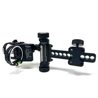 The Canyon Pounder is the newest addition to the Sight Line from Option Archery. Dan Evans designed this sight specifically for the archer who prefers a traditional “scope” sight picture with a single pin that is always centered in the housing. This model, like all Option Sight models, features Dan’s patented “flip out of view” fixed pins that are available on a moment’s notice. As the name implies, the Canyon Pounder is designed to make practice at extreme ranges attainable with 1.75" of total vertical travel and a second surface sight tape that can be used to reference the bottom fixed pin (or a second arrow configuration), effectively giving another 1/2"+ of travel. All adjustments and leveling capabilities are built-in with unbelievable machining precision and over-built to a level that will handle anything we can throw at it. Also, for added insurance, it’s covered by a lifetime Bumper to Bumper warranty, and it’s 100% made in the USA!