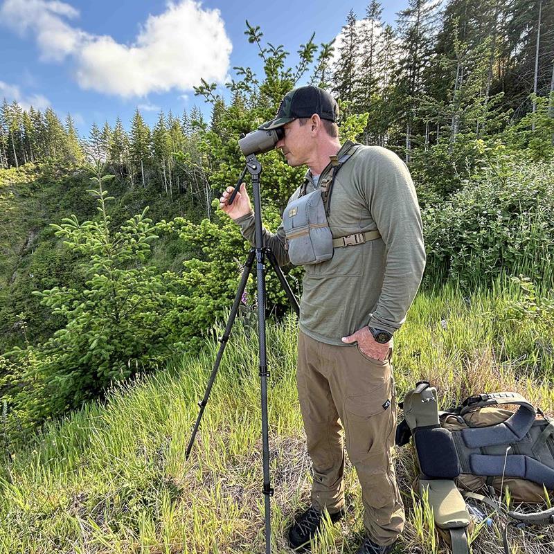 The Gen 2 Tripod uses a blend of materials to ensure the lightest, strongest, and most stable glassing platform possible while keeping the constraints of a hunter in mind. The trunnion, locks, and pivoting mechanism are machined from aircraft-grade 6061 T6 aluminum. The leg sections are made from a blend of carbon fiber and Innegra – the first of its kind.“The new Gen 2 tripod from Outdoorsmans combines the quality of machined aluminum we have grown to love and trust with a rigid carbon fiber for an incredibly strong and durable tripod that will hold up to the heaviest setups. One of the biggest problems I have had with most carbon fiber tripods is in the joints and moveable parts. They often fail as they are made of plastic and pot metal and wear out fast because of dust and debris. With all the joints in this tripod being made from machined aluminum, this is one of the toughest carbon fiber tripods I have ever run.The Gen 2 Pan Head is the perfect combination for a packable setup. This is a very capable head with easy pan and tilt adjustments. They have upgraded it to hold both an Outdoorsman adapter plate as well as an Arca Swiss plate to secure your binos or spotter so you will not have to go out and spend a bunch more money on adapter plates.I do a lot of backpacking as well as hunting off mules. This setup has held up to throwing it in the panniers or riding around strapped to the back of the saddle with dust and dirt coating every inch without any issues. The heavy-duty leg clamps are adjustable, which makes
