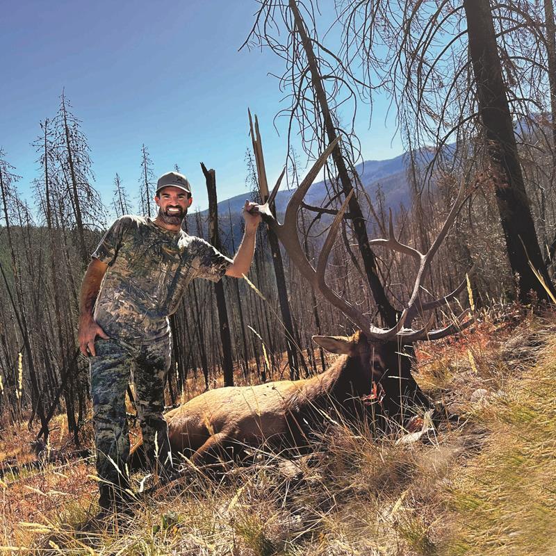 At 1:00 p.m., I made my way down the last canyon towards my truck. I decided to take a break as it was over 70 degrees and the burn I was going through offered no shade. I put my gun and my backpack down and then I sat down. I had just started to drink some water and eat a Cliff bar when, to my absolute shock, a bull came walking towards me less than 70 yards away. By the time I grabbed my gun and clicked the safety off, the bull was only 50 yards away. I could tell he was a 6x6, and I really thought he was 310-320", which I was more than happy to take. I pulled up my 6.5 PRC Christensen Arms and squeezed the trigger. The smack echoed through my ears, and I knew he had been hit. As I loaded the next shot, the bull stood motionless. I knew he was hit good, but I also didn’t want him to go anywhere. Right as I squeezed the trigger again, the bull fell forward and hit the ground, causing my shot to hit him in the guts. Either way, I was still happy as he was down.