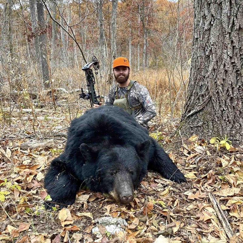 On October 17th, I was southbound with a sleeping bag and 10 days of food tucked under the camper shell of my pickup, determined to get every minute out of my opportunity to experience a Missouri bear season. I stepped out of the truck to a brisk 20-degree morning. My certainty of a filled tag plummeted as the freeze had me shivering under layers of thick wool. Acorns fell like hail, bouncing off the top of my blind and leaving a thick layer of forage on top of last year’s leaves.