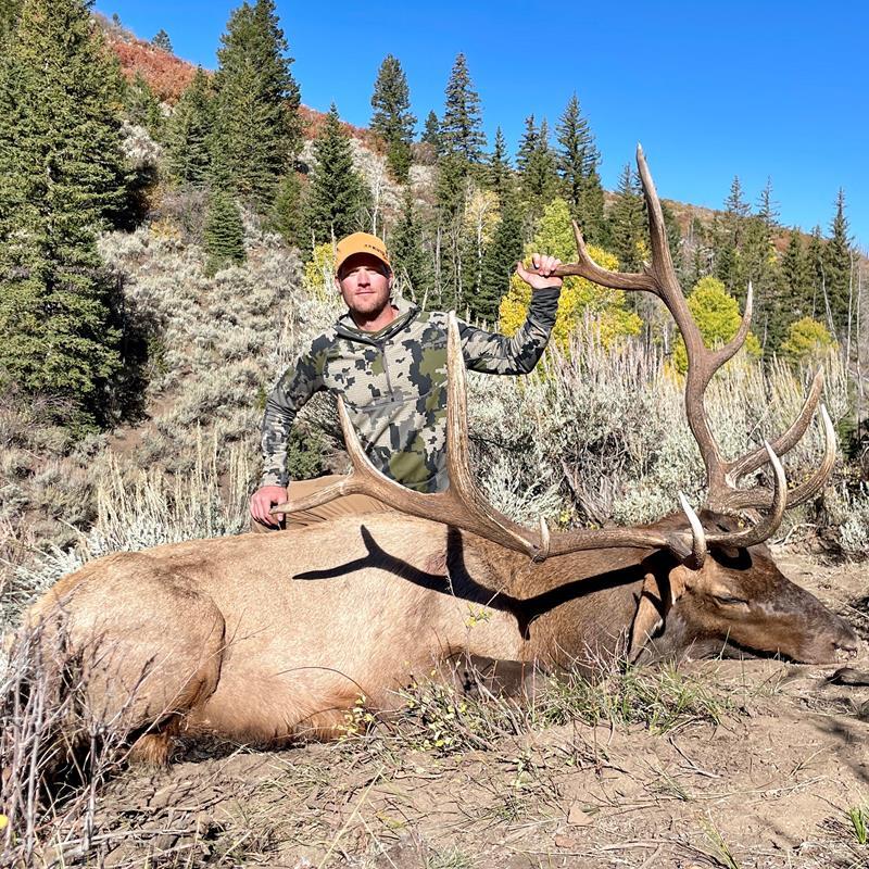 applying for all species in Utah as a non-resident for years. My good friend, Kelvin, had drawn an elk hunt in Utah a few years back. As we hunt together often, I figured if I ever drew that his knowledge of that unit and hunt would be invaluable. When Utah added new hunt options in 2023, I picked one of the new hunt dates thinking it could fit my schedule well. When draw results were released, I certainly did not believe it. I had gotten very, very lucky. With three non-resident any bull tags, I was the one lucky random draw with far less points than required for this hunt. Clear the October schedule, I was headed to Utah.Thankfully, Kelvin was more than happy to help and come along. I also spoke with quite a few previous Huntin’ Fool tag holders and narrowed down my plans. I had not realized my October hunt dates coincided with the annual spike and cow hunt in that unit when I applied. It was definitely a gut check to my expectations. After a lot of online research and navigating onXmaps, we took a weekend trip in June to check out the unit. Just driving in, we were seeing plenty of elk and deer along the main roads. It was pretty uplifting. We set camp, explored the unit, and put glass on a lot of wildlife. It was a fun recon trip, and it helped us make a general plan for the hunt. I was still pretty worried about all the added pressure of the spike and cow hunters. I noted a lot of good areas that were easily accessible, but also checked out a few hard to access spots that would get me far from any roads. The general plans were set.After months of waiting, the season finally rolled around. Kelvin and another friend, Kris, both were coming along. Living in Colorado, I am used to hunting the backcountry timber and burning boot leather with my camp on my back. This hunt was much different. It was mostly open glassing country with a well-established road system. Kris and Kelvin brought every toy a hunter could want. A Polaris Ranger, wall tent, heater, grill, cots, generator, and freezer. We were hunting in style! We chose to show up a couple days early to try and locate target bulls. We saw one decent bull the first evening on the long drive in and then set up camp. That left one day to find a better bull and hopefully make a plan A, plan B, plan C, and on down the line. At first light the next day, we located a better bull pushing some cows. I definitely would be happy with him, plan A. We figured we could keep searching and hopefully put him to bed in the evening since he was only a few minutes’ drive from camp. However, the bulk of the day was uneventful. We did find one more area with some decent sign but had not seen any more elk.We returned to where we saw the shooter bull that evening, and he was thankfully still following the playbook. After putting him to bed, we hiked back to the vehicle. Here’s where things got interesting. I happened to glance behind us as I climbed into the Ranger and thought I noticed movement on a further hillside. “Whoa, whoa, whoa, guys. There’s more elk out there. Check the further ridge. Oh man, the bull pushing that herd is way bigger!” I couldn’t believe what I was saying. A bigger herd with a no brainer shooter bull had crept out just before dark one ridge further than where we had been glassing. New plan A. We were even able to get some pictures and video of him through the spotting scope. I was ecstatic, but that enthusiasm was quickly put in check as we passed a group of hunters driving out to that same glassing knob in the last minutes of light. Over dinner, we discussed the best route in for the next morning. I knew it was going to be hard to sleep.We awoke for opening morning with a well-laid plan. Kelvin would head to the glassing knob to keep eyes on both bulls, watching both ridges where the elk had been the night before. Kris and I left earlier on the Ranger and parked at the head of the canyon that the plan A bull was in. We quickly descended into the canyon and fought our way through the oak brush via headlamp and moonlight. It was taking us longer than expected to navigate through the canyon and then sidehill to get into position. All along the way, I was worried our thermals would drift too close to the elk. The plan was to position ourselves for a roughly 300-yard cross canyon vantage from where we had seen them emerge from timber the night before. If they followed the same bedding pattern and elevation line, our thermals would stay below them. Cutting the distance, we began to hear bugles and were racing the dawn light to get into position. I had pinned both the elk and our target location on onX the night before. We barely made it there before being exposed by the morning light and found an opening to set up.As the light revealed the canyon, elk slowly appeared with the emerging dawn. Cows were spread out high on the hillside and patterning down in our direction. The bull was losing his mind trying to keep them together. Dashing from one group to another, bugling and raking, his cows only saw him as an annoyance. As cows would draw near us, he would break in our direction and I would get ready for a shot, only to have him turn and chase cows further away. It was a nerve-racking hour of near shot opportunities as he would sheep dog all over the hillside, checking his cows. At one point, he came to 300 yards, and I was bearing down on the trigger when he turned, only to run off again. I was really kicking myself for not being faster on the shot. I kept asking Kris if I should shoot at the longer distances. Thankfully, he kept very calm and continued to assure me the bull would eventually come closer and stay on pattern to the bedding area. However, this was a big bull in a visible location. Thinking other hunters had to be creeping in or a cow would eventually catch our scent, my anxiety only grew with time.Two distant cows soon dropped into some thicker cover lower in the canyon than we could see. When the bull headed 