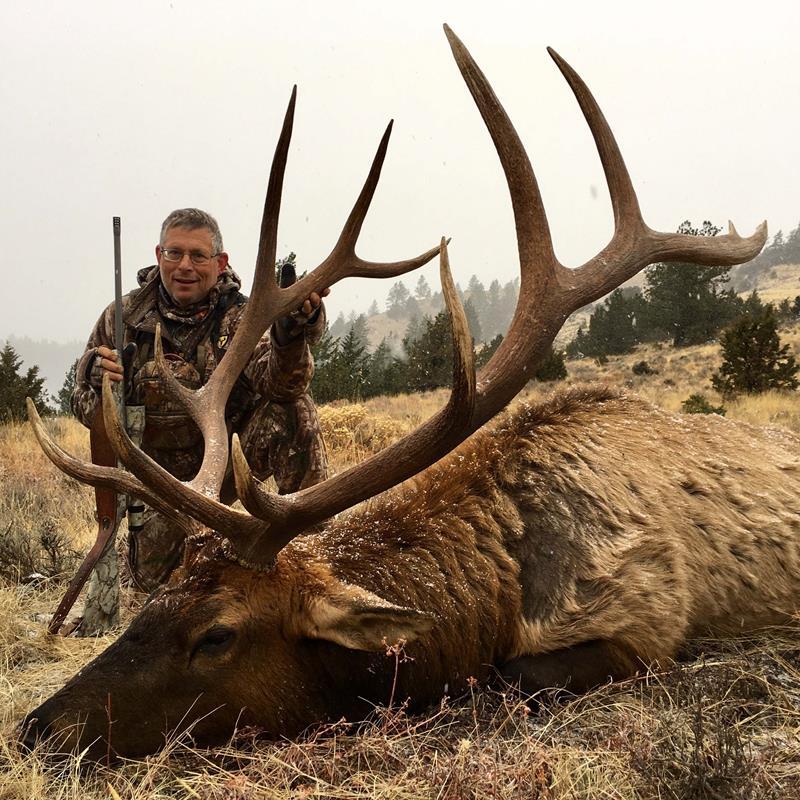 About 10 minutes later, I heard Nic moving below. I ran down and told him the bull was down. We headed down the hill, and as we neared the juniper, Nic yelled, “He’s down!” As I came around the tree, I was stunned. The bull was piled up and not moving. I had taken him at the top of the heart. There was no ground shrinkage. The bull was a lot larger than he had looked on the trail cam pictures. I was ecstatic, and as it turned out, this was the largest bull ever taken on the ranch. Planning, trading, and a lot of luck led to my best year ever in Oregon!