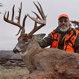 Swarovski binoculars, I watched the next buck crest the hill and immediately thought, ?That buck is a lot bigger than I thought. I need to shoot that deer.”I traded my binos for my Marlin and took aim. I heard my first shot hit with a solid thump, and he only ran 30 yards before stopping. I am an advocate of, "If the animal is still standing, keep shooting.” I shot again. When he fell into the field, I saw the distinctive droptine and sticker points of the big 10. I started to get excited. After making sure my buck was not getting up, I raced across the field to where he lay. I was speechless.I took a couple quick, poor quality photos and texted them to my father and Dave, and then I sat down next to this magnificent animal that had given me the chance to redeem myself. All totaled, there were five of us hunting the big 10’s core area. I was praying someone in our group would get this deer just so I could lay my hands on his rack and find some closure. I was hoping, but I never expected that I would get a second chance.The recovery and celebratory photos that followed were done in a dream- like haze. It was not until later the following day when we put a tape measure to his rack that we realized how much antler growth he had added since last year. We came up with a green gross score of 225 5/8".I have to thank Dave Schmidt. Without you, this buck might not have been put on the ground. Thank you, Mike and all of your family, for inviting us into your lives and letting us hunt your property. Thank you to my beautiful wife, Carolyn, and our wonderful children, Heather, Matt, Lily, and Sophia. Most of all, I want to thank my mother and father, Ray and Dolores Jennings, for making me the Huntin’ Fool that I am today.