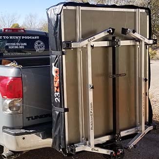 At first, I was skeptical about the usability of the Hitch Tent platform from Rubicon, but after using it on a few late season hunts this year and hauling it for thousands of miles attached to the back of my truck, I'm sold! If you're tired of sleeping in the seat of your truck and find it too inconvenient to completely unload the bed of your truck to set up sleeping quarters, you should consider this Hitch Tent Platform for an easy-to-use solution for taking a quality tent into the field next season." - Austin Atkinson, Hunt Advisor