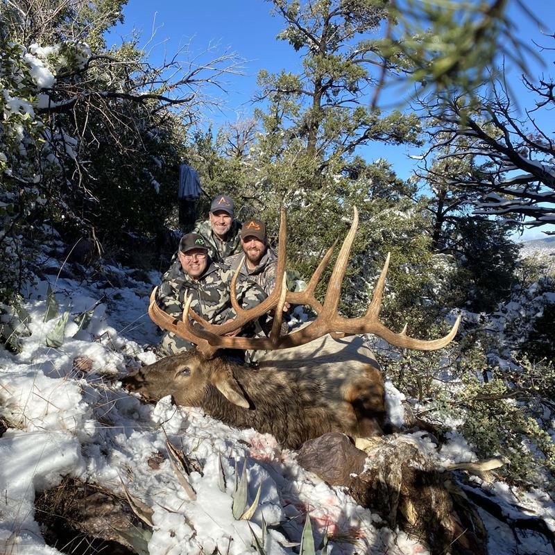 Most people reading this article already know that a hunter must be patiently persistent to kill a trophy bull elk. My older brother, Don Chandler’s, patient persistent added up to 17 years of membership to Huntin’ Fool, applying to 10 different states, not getting drawn, waiting, reapplying, and waiting some more. Over the years, Don drew tags for other animals, but it was all worth the wait when he found out he had been drawn for a late season elk hunt in Arizona’s unit 23. Huntin’ Fool kept him in the draws, put him in the right area, and put him in touch with the right guide, Caleb Miller of A3 Trophy Hunts.Our hunt was to begin the day after Thanksgiving. Despite the fact that Don and I had both been hiking and training for this adventure, we arrived a few days early to let our lungs adjust to the higher elevations of Payson, Arizona. After having some time to adjust to the altitude change, we decided to make a 2,500 foot ascent into the mountains to set up camp.Hoping to glass more territory when the hunt began, Don also hired Nathan Moody as an extra set of eyes to help us glass multiple locations. Dan Hiegel, also a guide with A3, went along to help set up camp and glass while he waited on another incoming client-hunter. In fact, Dan’s extra set of hands helped us get camp set up quickly enough to get in some glassing later Wednesday afternoon. That afternoon, we only spotted one fairly good bull. After sunset, we made our way back down the mountain to enjoy Thanksgiving festivities the next day with Caleb, his family, and his parents, Connie and Dave Miller.Watching the changing weather forecast, we became more concerned that the creek we wanted to cross would become impassable with rising water. We decided to cut Thanksgiving Day short and head back up to camp on the mountain. The temperature was dropping fast, and the torrential rain began changing over to a wintry mix. As the wind blew the wintry mix sideways, we tied down everything that might blow away and then retired for the night.It snowed all day Friday and then quit snowing sometime early Saturday morning, dumping over 10 inches of snow on the ground. We were up and in the Polaris by 7 a.m. heading to our glassing spot on the southernmost tip of the mountain. With four of us glassing from two different locations, we ended up spotting seven bulls by 9 a.m. None of those seven bulls were the one Caleb wanted to put Don on, a bull the A3 guides referred to as “One Ton.”After maneuvering to get a better vantage point to glass down a western valley, Caleb spotted what he believed was One Ton working his way down the side of another mountain across a steep ravine. He was on the move, and we had to get into range to confirm whether this animal was One Ton or another trophy. With frantic optimism, we headed back across the top of the mountain to find a better vantage point. After a short but brisk hike, we made our way to the west side of the mountain and set up the spotting scope. At about 1,000 yards across a ravine on an opposing mountainside, there he was. Caleb was able to confirm through the spotting scope that it was One Ton by the unique corkscrew or “whale tail” on his right main beam. One Ton was a 7x7 mature bull which Caleb estimated would score in the 380"+ range.Because of the distance, we decided to try to close the range a little bit and work our way into the 800 to 900-yard range. We maneuvered over the crest of the mountain through the pines and cactus for a closer shot. Just off the crest, we found a narrow piece of ground to set up for the shot with a clear view through the snow-covered mountainside, but he was slowly making his way down the mountain, quartering towards us, weaving through the pines. Caleb ranged the shot at 900 yards and closing. With Caleb and me watching One Ton through our spotting scope and binos, we were able to see him finally break out into a small clearing and stop to feed with his head down. Caleb ranged him at 880 yards, and Don decided that it was time to shoot or possibly lose the opportunity. Don’s first shot was a miss low in between the bull’s legs. He checked his scope, compensated, and squeezed off the second shot, which was a hit. One Ton went down at 10:30 on Saturday morning.Once we collected our thoughts and slapped a few high fives, we realized that the fun was just beginning. We left our vantage point and started down the mountain across the ravine to go meet One Ton. The hike was tough with a lot of unstable rock and a steep gradient. We left our shooting spot at 10:40 a.m. but did not reach One Ton until over three hours later at 3:30 p.m. Finally managing to meet One Ton, there was certainly no ground shrinkage. This animal was a monster! Thankfully, Caleb had called two other guides, Jake Hernandez and Nathan Moody, for help cleaning and packing out. Once photos were taken and a few more high fives were exchanged, all of us got to work. Caleb, Jake, and Nathan made quick work of One Ton. By 5:00 p.m. as the sun was setting and the temperature was dropping, we all started the pack out back to camp.One Ton was a gorgeous 7x7, which ended up measuring 380" with a 58" left beam and a 57" right beam. If you are ever in the Payson, Arizona area and need a processer, give Sundi and Terry a call at Round Valley Processing. Their butchers did a fantastic job processing and packaging the meat.Looking back, the success of this hunt can be boiled down to three things – proficient shooting at long range, being in good physical shape, and having a determined guide like Caleb Miller who is experienced in the territory you are hunting.Finally, this adventure certainly reemphasized the fact that hunting is not just about killing an animal, but it is also about establishing friendships that last a lifetime. Friendships that are founded on the mutual love of trophy game, conservation, adventure, and the outdoor lifestyle. Indeed, since the hunt, Don and I ha
