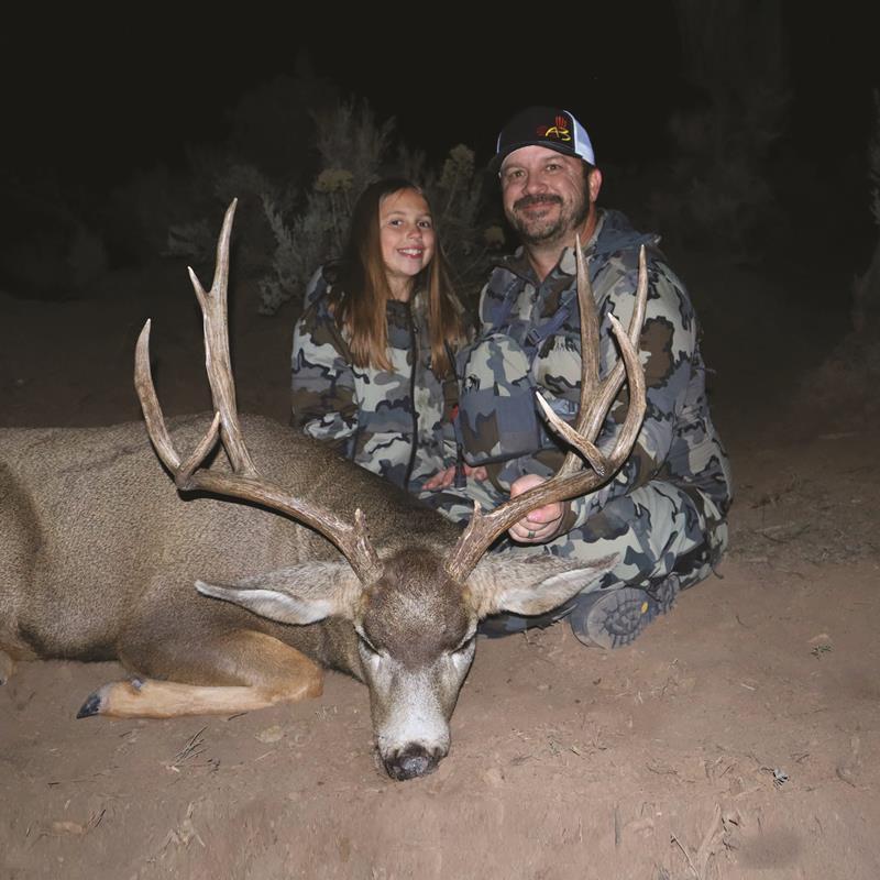 the best. I had so much fun! One of my favorite parts was spending time with my dad. He had already taken me out west for a bear hunt, so when he started researching mule deer hunts, I knew I was in for a good time. He had been talking with Ryan from A3 and applied me for the tag.Since the application date, I had forgotten about the draw results. I was at school after lunch, and my teacher announced that my dad had called and wanted to let me know I had drawn an amazing mule deer tag. I was so happy that I was jumping up and down in the middle of my class.In preparation, I had to practice my shooting to make sure I was ready for long-range. My dad was building me a custom rifle, but it ended up not being ready in time, so I prepared with a .300 Ultra Mag. My dad and Greg Holtz took me to the range a few times to practice shooting. I was consistently hitting the targets at 500 yards and beyond!The day we left for the hunt, I was excited for the possibility of getting a giant, even bigger than my dad had taken, to hang on our wall. The drive was a long one, but I always enjoy watching on the way to see what wildlife I can find. Once we arrived, we settled in and prepared to get at it the following morning. It was the most beautiful scenery I could imagine.Getting up at 4:30 a.m. is not an easy task. It was dark and cold, and I had to pile on the layers of camo so I would be comfortable out there. Dylan and my dad started glassing while I daydreamed about a big buck. I helped glass too, but I took breaks to draw things that I saw. I wanted to remember this moment forever.After much glassing, we finally found a great buck about 300 yards away. We decided to try and get closer for a better shot. While we were packing everything up, another hunter pulled into view to get a look at the same buck. Unfortunately, they had scared the buck away. We decided to pull off and find another great buck.We hiked through ravines, over boulders, and through the thick brush. Holding my dad’s hand, I was optimistic about finding my buck. Sure enough, I had my second chance. I settled in and was ready for a 300-yard shot. I set the crosshairs and pulled the trigger. I got him! My guide, Dylan, said it was actually a 500-yard shot and the buck was down.As we approached this deer, I realized how grateful I was for this opportunity, and to bring food home for my family made me feel proud. As I watched them skin the deer and separate the meat for each of us to carry, it was getting colder outside. I asked if we could start a fire to warm up. Dylan had
