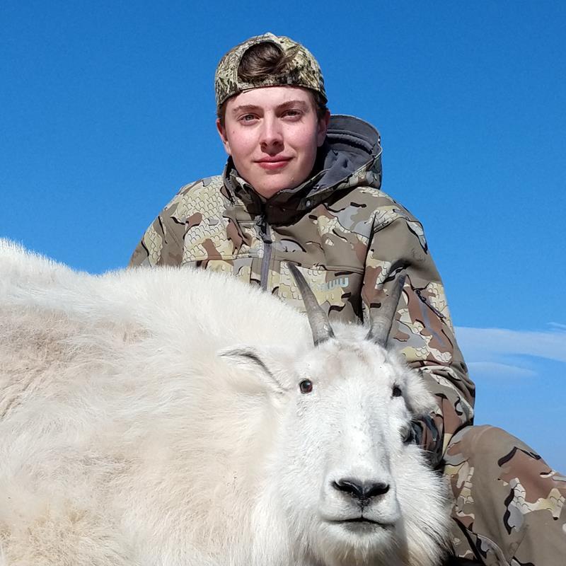 hunt as often as you can and start applying for my two boys as soon as they are old enough so that we can go on hunts together when they are late teens and 20s. The second principle has turned out to be the most valuable as my boys have drawn amazing youth tags, such as Utah’s any bull and New Mexico’s nanny ibex, and those hunts have honestly been more fun and exciting than my own.Last spring when I submitted our applications, I thought my oldest son would have the best chance in Colorado because he is now considered a resident as a Colorado college student. We were hunting turkeys in our home state of Missouri when my youngest son, Everett, said “Dad, I think I drew the Colorado mountain goat tag!” I told him that email was just a notice about his preferencepoint. It surely could not be real because 2020 was the first year he would have been eligible with the 3 mandatory points and no points to improve his position in the draw. He kept pestering me about it, so I finally fired up the laptop and nearly fell out of my chair when his Colorado account said SUCCESSFUL for mountain goat! It was time to get serious.I decided on three steps to really make this hunt amazing. First, improve the optics on his rifle and get him shooting. Everett was a decent shot out to 200 yards, but I wanted him to achieve another level of proficiency, so we shot a lot. Second, I called Huntin’ Fool and asked who I should call for outfitting/guide service. The answer was quick – Matt Schneider’s Geneva Park Outfitting. I called Matt, and he impressed me with his interest and focus on the fact that Everett was 16 and he was still young enough that this hunt needed to be fun. And last, I decided that even though we were in the middle of a pandemic, we were going to go looking for goats. We had a great (safe) family vacation in July where we were able to stay isolated from everyone and scout for goats. We found a few billies and a lot of nannies and kids, and we were more excited than ever.Matt decided our guide would be Todd Clark. He has a son of his own and was really interested in guiding young hunters. We shared pictures of our scouting efforts and of earlier hunts in the fall, and he let me know we would be staying with him in his house as our hunt area has little opportunity for camping. We also talked a lot about goat identification as Everett’s tag was for a nanny only. The Colorado Division of Wildlife and Rocky Mountain Goat Alliance websites have fantastic online videos to watch about goat hunting and goat identification. We watched them multiple times.Finally, the first week in October arrived. I drove out with all of our gear, and Everett and my wife flew out so we could the minimize the amount of school he missed. We got settled in and decided to go scouting. Todd showed us that the trouble isn’t finding goats, it’s finding goats in a spot where you can get to them, shoot them, and be able to retrieve them. We glassed a large group of nannies and kids and a couple of smaller groups and put them to bed.The next morning, we stumbled through the obligatory pandemonium of getting everything organized and headed out. We found the smaller group, but they were standing on a rocky spire with a 1,000-foot fall beneath them. Todd thought they might move to a bowl later in the morning to bed up, so after we watched them for a while, we went to check on the big group. We found them way up on the top of the cliffs and then we saw another hunter. He had gone after them with a bow and had blown them up the mountain. Back to the smaller group. We got to our observation point and could see them moving up toward the bowl, just as Todd had suspected. Game on. We parked the truck at 10,500 feet and headed up. Now this is the part where I tell you I wish we were in better shape. We had been walking a lot to try to be ready, but flatland walking just doesn’t cut it. We left the truck at 10 a.m. and didn’t get near them until 1:30 p.m. At one point, I could stand on the sidehill and reach out and touch the hill next to me, so that gives you an idea of how steep it was.Halfway up, we had a point where we could see the bowl, and they were bedded there, three adults and two kids. We thought the adults were all nannies, but again, you can’t be sure until you get close. They were well above tree line and plainly visible, but there was also nothing to hide us, so we had to work around to come over the rim. As we got to the rim of the bowl and peeked over, expecting them to be within 100 yards, they weren’t there. We moved up and down the rim of the bowl. No goats. Todd thought they must have winded us or they just decided to feed back to the cliffs. Suddenly, there they were about 350 yards away, moving out of a cut away from us. Todd said, “Drop the pack. Mark, you stay here. Everett, bring your rifle and let’s go!”I plunked down on a big rock and watched them work right up the hill. The goats could see them, and they were wary, but they didn’t run. Just when I thought they were pushing it too far, I saw the guys set up on a big rock. The crack of the rifle was a welcome sound, and I saw one of the adults jump, lurch forward 10 yards, and tip over. Everett had made a perfect shot at 200 yards, and he had his goat! He also had perma-smile.When we got to her, we just stood and stared. What a beautiful creature! Her feet, horns, and hair were amazing. I checked the GPS and it said 12,500 feet. Two-thousand vertical feet was a lot for this lowlander, and now we had to get her down. We had snacks, appreciated the view, and got to work. Todd took her apart and packed all the meat in his pack. I had the full head and cape, and Everett had all the gear. We later weighed the packs at his house. Todd’s was 75 pounds, and mine was 40 pounds. After a long, careful descent, including one clumsy fall, we made it back to his truck at 7 p.m., just at last light. We found out that night that Geneva Park Out
