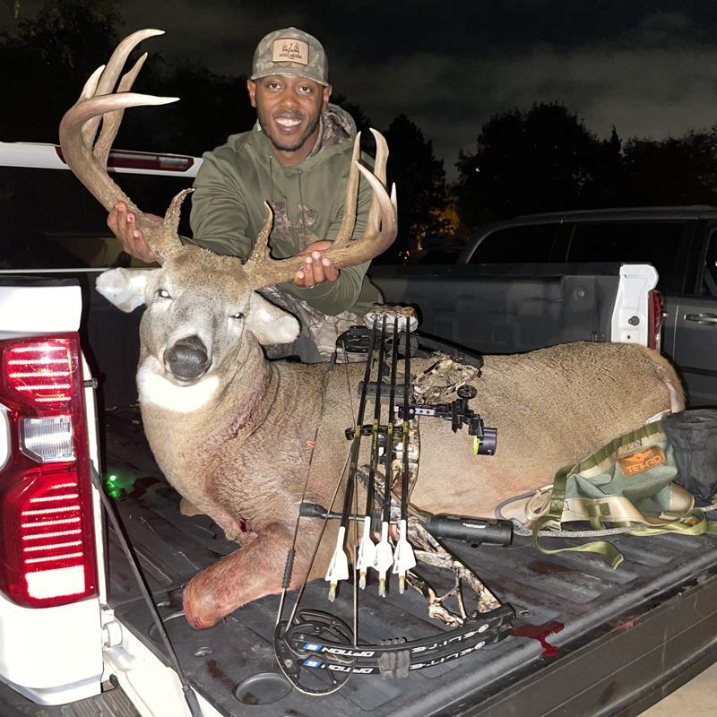 The next morning, I went out to the same spot, and right at first light, I had a 130" class 8-point on the wood line checking for does. I grunted at him, and he came in on a string, presenting me with a 30-yard broadside shot. The anxiousness took over, and I could not pass up that shot. This harvest was my biggest buck to date. Although I was excited about accomplishing a new personal best, I knew I had a lot of homework to do in the offseason chasing the “stud” I had on camera.
