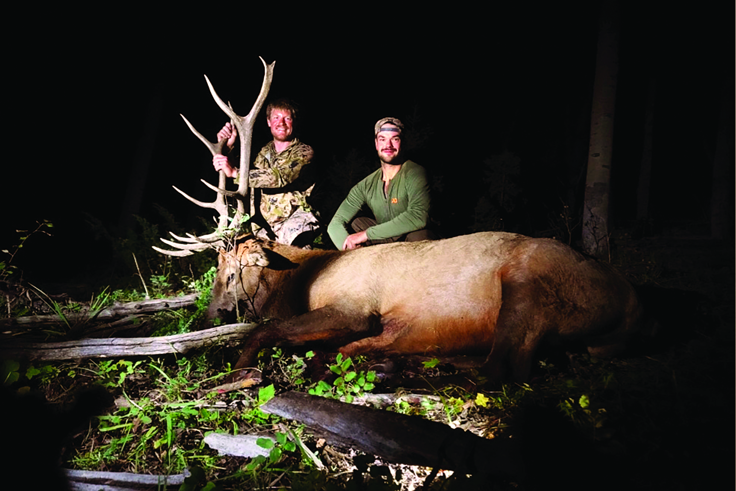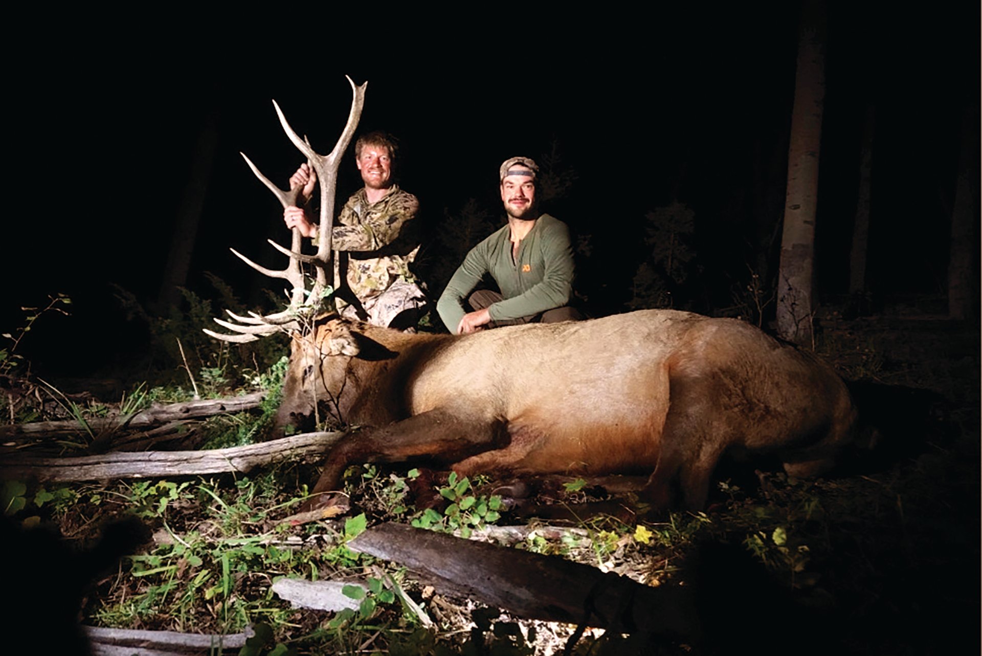 As I scanned the forest floor through the broken timber, something tan caught my eye. I raised my binoculars, and sure enough, there was my elk piled up about 60 yards away! I waved Eric over, putting a finger to my lips, signaling to remain silent. I had always heard that an elk’s will to live is like nothing else in the world, and I got to see it for myself that night on the mountain. The bull was taking his final breaths, and I put a final arrow in him just to be sure. Knowing the end was drawing near, we slowly backed out so as to let him pass on in peace.