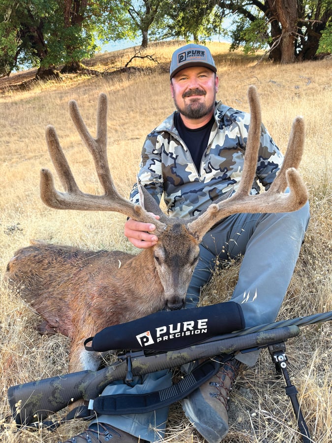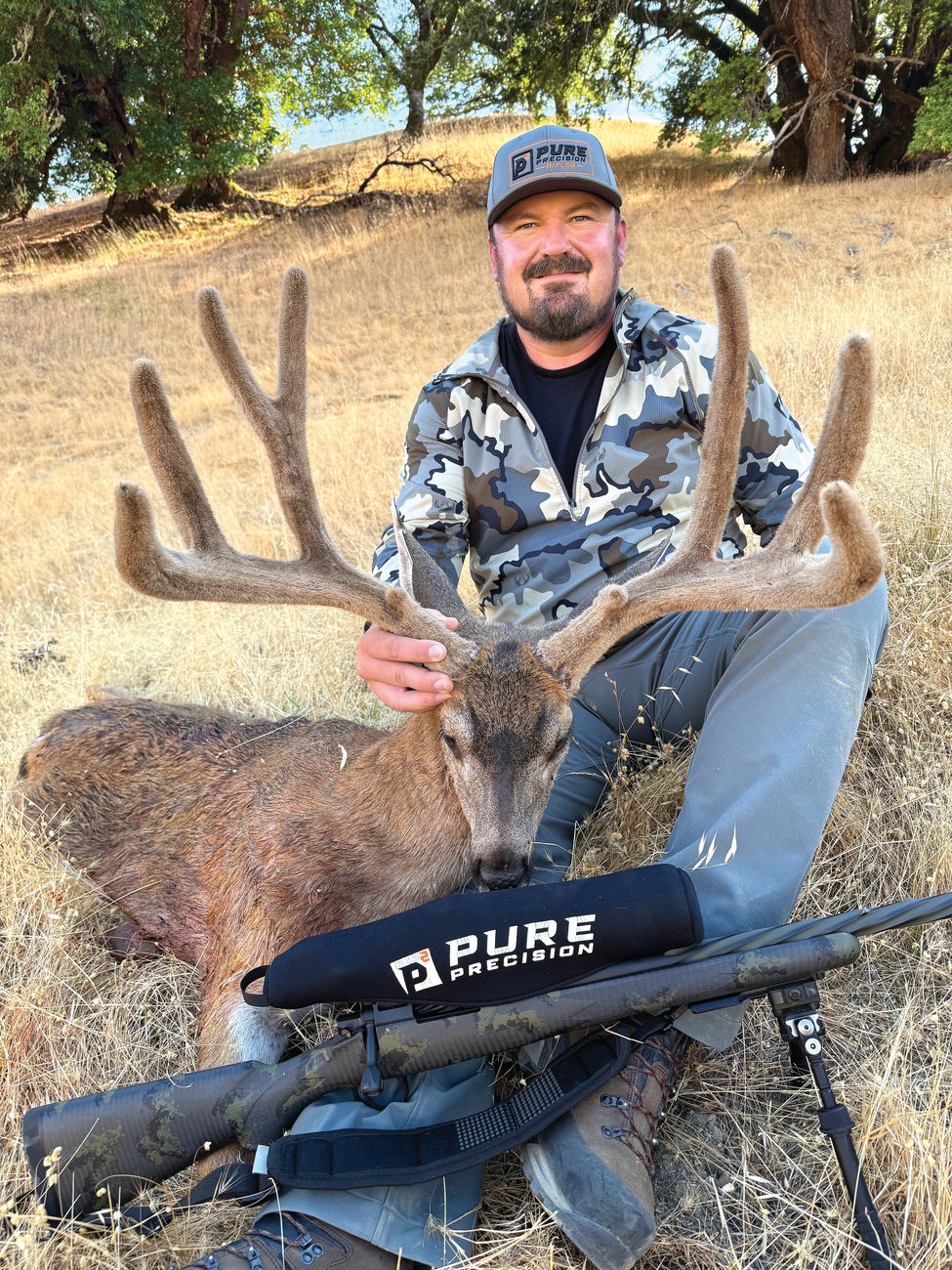 The wait was finally over. My business partner and good friend, Dustin Speer, and I boarded a plane to Northern California, armed with deer tags and a couple of Pure Precision rifles. We arrived at Dylan’s at around 3 p.m. Dylan had two fully equipped rooms for his hunters, providing everything they needed. Notably, he never puts hunters from different groups together, which was a great perk. We were greeted by Dylan’s wife, Holly. The other two guides and friends were John Stillwell and Carlos Alejandro. After a delicious dinner prepared by Holly, we loaded up in trucks. Dustin and John, affectionately known as “Juancho,” set out to find Dustin’s buck, while Carlos, Dylan, and I ventured into Clayton’s lair.