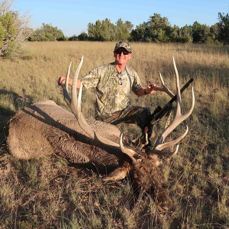 early rut five-day hunt probably due to Covid cancellations. Many calls to the reservation Game Department and my friends at Huntin’ Fool satisfied me that this was a fair chase trophy, not management, hunt with competent and experienced guides.I went into high gear preparing for my hunt. I resighted my .50 caliber muzzleloader with a new scope and a new bullet/sabot and fine-tuned my load. A lot of generous calls/texts from the assigned guide about camo, gear, weather, terrain, etc. and now I was ready. More importantly, I felt the guide was ready. He sounded experienced, energetic, and engaged. He had been scouting and texted several pics of impressive bulls. Everyone agreed the historic draught would lessen antler growth by 40 points or more. However, the guide insisted the most dominant bulls found a way to minimize this effect. I felt better about my trophy potential in a very poor antler growth year.I decided to drive the 1,107 miles due to Covid and difficulties with transporting meat, cape, and antlers. My wife offered to help drive on two conditions. First, we detour to our one- year-old grandson’s birthday party in Dallas (only a 660-mile detour). Second, that I take the first reasonable trophy I saw so we could maximize our time in Dallas. It was a good way to preserve some “coupons” at home for future hunts.We left early to spend some time in Santa Fe. The culture and history museums on the famous town square were very enjoyable. The weather was perfect, and the scenery was gorgeous. Surfing the internet along the way, my wife confirmed my guide was a well-known jewelry maker. I wondered if he would make me some custom bracelets.The “inn” on the reservation was sparce but adequate for the circumstances. We met the other four muzzleloader hunters. They were all friends/family from within 50 miles of my hometown. We went on a private guided tour of the historical/cultural central area of town. Occupied, restored, 300+ year old adobes surrounding a mission church dated to 1620. It was a very cool, impressive local history/ cultural lesson. This guide, who interned at the Smithsonian Institute, invited my wife to a very private tribal religious dance the next day as I would be hunting.The first morning, we listened predawn for bugles on a high plateau covered with cedars. At first light, we tried to get ahead of them and spot them for size. The first two attempts, we failed to get ahead. On the third attempt, we heard a loud muzzleloader report just ahead. We assumed another hunter got our elk, but we found out later they had missed. The shot finished our morning hunt, so we set up a hideout at the local favorite waterhole for the hot evening hunt. We headed back to the inn for breakfast and a nap.An hour before sunset, I was in my hideout with the guide in his hideout 50 yards away calling. Before 30 minutes passed, I heard a nearby bugle behind and to the right. We expected the approach to be from the front and right, but such is hunting! Several minutes later, we heard a much closer bugle behind and to the right. I got positioned to shoot down my hideout’s entrance hallway and pulled down my camo bug head net. Quickly, antlers appeared in the horizon valley of two adjacent shrubs at 30 yards. He quickly moved behind the contiguous cedar, and I cocked the hammer. He froze for several minutes with his rump still visible. I thought for sure he was going to bolt.After what seemed like forever, he slowly advanced to the other edge of the cedar. He looked right, straight, and then left directly at me, trying to find the source of that sound. Eyeball to eyeball at 20 yards, he couldn’t make me out tucked in the shrub with head net down at full draw. I had forgotten to turn down the scope from 9X, so I could count his eyelashes, but his points were hidden by the cedar. He leaned his head back and sniffed to try to wind me. Fortunately, I was downwind for now. I could now see his near main beam and 6 points but not his far beam. His vitals were still hidden by the branch tips, and he wasn’t moving forward. I decided he was big enough. I estimated his vitals and squeezed off. The roar and cloud were impressive, but I hardly felt the usually stout recoil. The “whap!” was gratifying as was the off cadence of his hoof beats. He piled up just as he came back into view 100 yards out.The usual ground shrinkage was minimal. My trophy was a nice 6x6 with a broken brow tine and score estimate of 320". After the high fives and pictures, the Game officials transported him to headquarters for documentation and processing well into the night. I donated the quarters to their Golden Eagle Restoration Program. My guide’s friend caped the head and froze the meat and cape overnight.My wife had a wonderful afternoon at a very moving religious dance that Caucasians never get to see. The other couple was a philosophy professor from my old university and his wife. The next morning, the guide helped load the SUV and fasten the antlers to the top. After a nice Dallas visit and elk steaks on the grill, it was straight to the taxidermist’s at home.Sometimes things have a way of just working out. We both had a wonderful time. We met some great people. The wife was very pleased with her custom jewelry that arrived several weeks later. I might have earned more “coupons” at home than I burned. Thank you to Huntin’ Fool, the Game Department, my guide/jewelry maker, Larry, and especially my wife. I’ll be back someday, and as requested, I bet my wife will too. Customer service like it used to be!