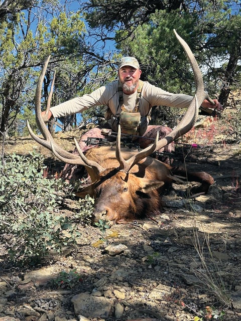 This year, I decided to up my odds by putting in the outfitter draw. I contracted with an outfitter through which I have been buying landowner tags. My contract with the outfitter was for the two-day hunt and self-guided after. I could not believe my eyes when I pulled up the New Mexico draw results. I drew one of my favorite units in Southwestern New Mexico. I had hunted this particular unit three times before and had been lucky enough to kill a 303" 6x7 in 2020. Knowing the unit reasonably well and the potential of killing a bigger bull, I set my sights on killing my personal best bull. I planned a trip over the summer to take my family and do some scouting. We spent five days in the unit, and we were able to find some very nice bulls, with several north of the 350" mark.