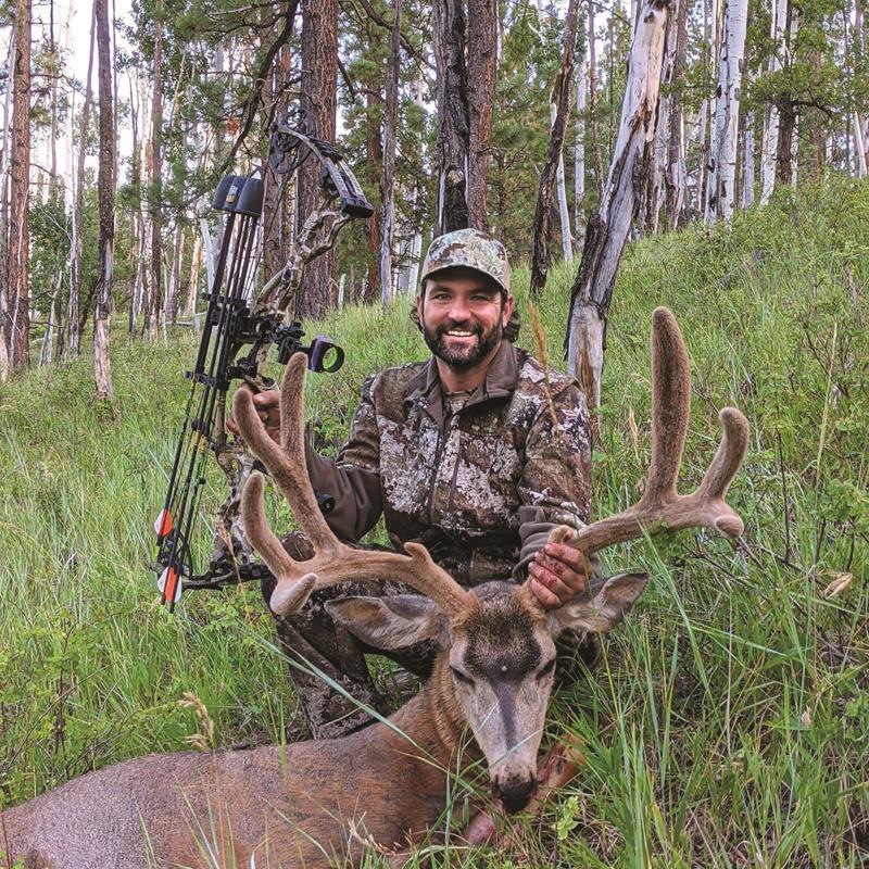 We went back to camp and regrouped. I shot my bow multiple times and was right on. I guess buck fever really got to me! Encouragement from everyone at camp and not giving up put us right back in the same hunting area. That evening, we had spotted the buck I was after. He looked so much bigger and older than the other deer hanging with him. We built a plan, and the stalk was on. I was able to get within 42 yards of the buck, settle my pin, and let an arrow fly. It was a great hit, and the buck went down immediately. I couldn’t believe it! I had just harvested the most amazing deer. The stars had aligned for me in more ways than I can describe. I had dreamt of this moment, being with my family in the most beautiful place on earth and chasing such magnificent animals.