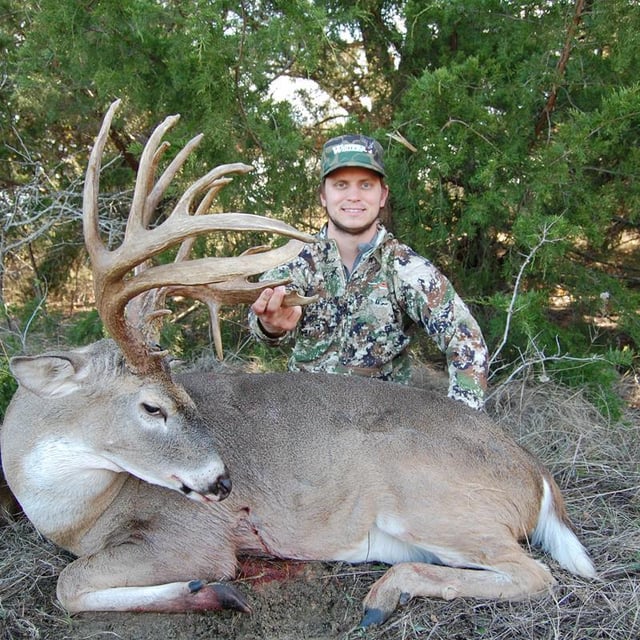 In October 2016, a new buck showed up on our primary hunting spot, a small 100-acre lease in north Texas. He appeared to be a four-year-old buck. At the time, I’d never shot anything as big as him. He had a tall, typical 9-point frame with some extras on the right side. He would have probably scored around 150". The buck was strictly nocturnal on our cameras and only hung around our place for a couple weeks during the season. After the 2016 season, we never saw him again.