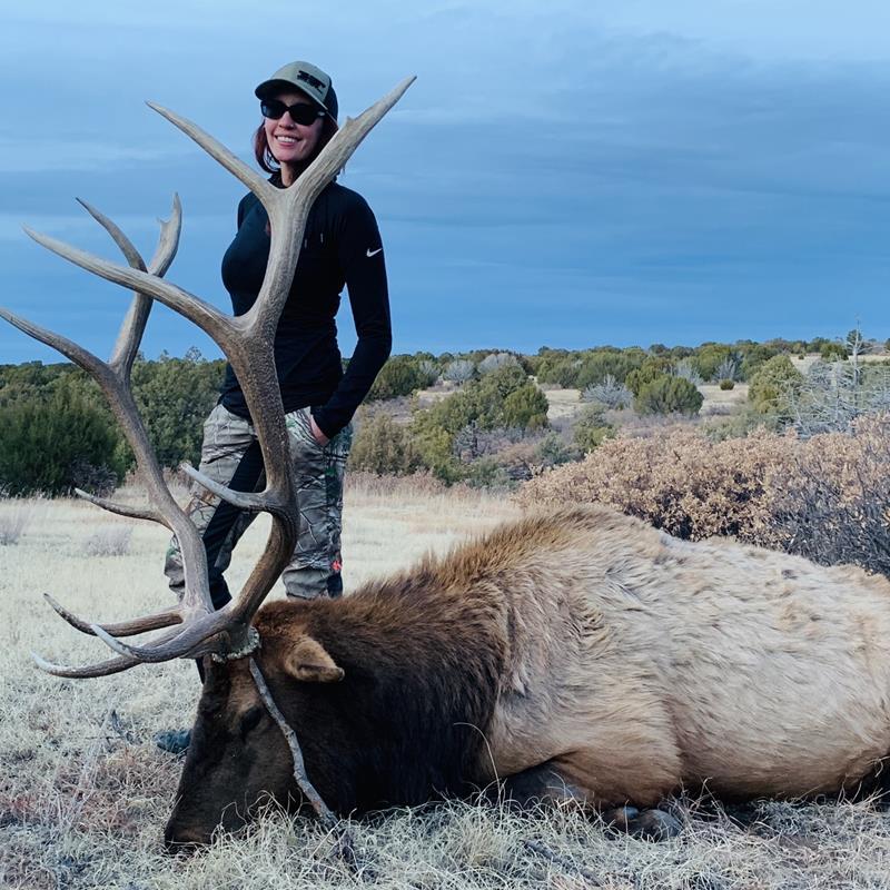 For Christmas, my boyfriend, Matt Adams, surprised me with a five-day elk hunt. The day before my hunt was scheduled to start, we got up before sunrise and set out to scout around. First thing that morning, a beautiful beast stepped out. The sun was rising in the sky, and his cape was glowing and his antlers were like diamonds, reflecting the light whenever he would turn his head. We couldn’t have missed him if we tried. He was just walking around, showing off and enjoying the morning sunshine. We sat on top of the mountain in a field of grass for hours, just watching him and taking it all in. Finally, he decided he would stop teasing us and walked over the edge of the cliff to find his bedding spot for the day and we headed back to camp.