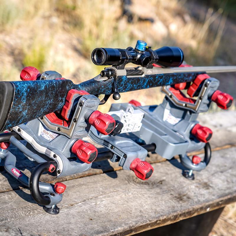 With the Tipton Ultra Gun Vise, different modules can be quickly moved, rearranged, or removed anywhere along the rail. Over-molded rubber contact pads throughout the device prevent damage to the firearm. Ball and socket articulating clamp pads allow for the pads to adapt to any surface. The tube frame structure allows for complete access to your rifle. Dual Clamp Technology rigidly holds any gun shape in place. Leveling feet on all corners makes scope leveling easier. The modular system allows you to clamp components like AR Upper assemblies without needing to have them attached to the lowers. Engineered glass-filled nylon construction provides a high level of rigidity while preventing damage to your firemarm.