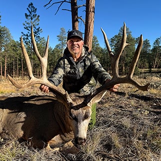 My quest for a big mule deer dates back many years. I had been on a number of mule deer hunts with limited success. As many of us have been doing, I had been building bonus/preference points in many of the western states. Three years ago, my friend and owner of White River Guide Service, Wade Ovard, recommended that I try to draw in Arizona. He put me in touch with Hunter Weems, owner of Arizona Custom Hunts. After talking to Hunter, we came up with a strategy to try to draw an early rifle Kaibab hunt in unit 12AW. I had enough points that should have allowed me to draw the tag. Unfortunately, due to point creep, I was again unsuccessful in the 2024 draw.