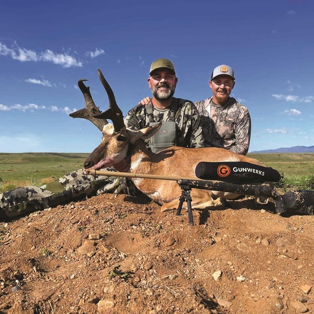 By Saturday morning, we were glassing again, and we worked our way to his location. We found TV! We were 440 yards below him, but I wasn’t confident with the shot because this was my first time shooting up an elevation at that distance. I rushed and skyed him, missing his head by an inch. Thankfully, it was a clean miss. He took off, and I was left deflated. This was possibly the largest antelope I’d ever see, but Tommy Holder was calm and convinced me it wasn’t over. We pressed forward, finding him yet again, but this time, he was 800 yards away and walking away from us. My redemption shot wasn’t a possibility. As I watched TV walk out of my life again, he took a piece of me with him. I was left to replay that terrible shot and the mistake I made over and over in my head. As you know, the hunt must go on, so we continued.