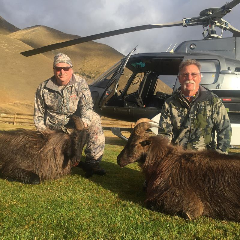 An hour later, while Joe and I (along with our wives, Mary and Debbie) were discussing the idea, the helicopter appeared on the horizon. Dangling 20 feet below on a rope was a tahr silhouetted with the majestic Southern Alps as a backdrop. We were hooked. The fact that Debbie and Mary could join us and the excited story from the previous hunters made us even more pumped for the action.