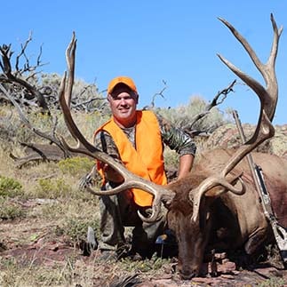 The next morning, we walked to the rim of the canyon at first light and began glassing, trying to get a look at the bulls that we had heard as we approached. Several of the bulls were in the bottom of the drainage, but the terrain made it impossible to get a look at them. Finally, we got a peek as they began working up the other side. It was the two bulls we were interested in. Both were 6x7, and they looked big! The two bulls were working toward each other, posturing and bugling at each other and the smaller bulls in the valley. They were 600 yards with no chance at getting closer, so we began to video them and took some pictures with the Phone Skope. Our goal was a 350" bull, and after waiting this long for a tag like this, we didn’t want to mess up. I quickly texted the pictures to my guide buddies to get their opinion on what class bulls these were. The reply was quick, “Shoot!” With no chance of getting closer, all we could do was wait for the bulls to start to move toward their bedding areas and wait for an opening. The bull Bronson liked picked up the only cow in the valley and moved to a small patch of trees to bed on the open hillside across from us.