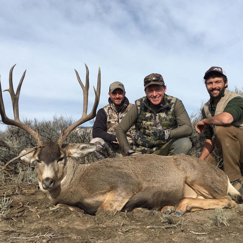 Ryan and one of the other non-resident hunters soon joined us on the ridge. The vantage point was fantastic. With four experienced hunters glassing with quality optics working together, we were seeing deer all over the place. Then, Ryan calmly said to us, “Wait, look right here. See those tips in the sage?”